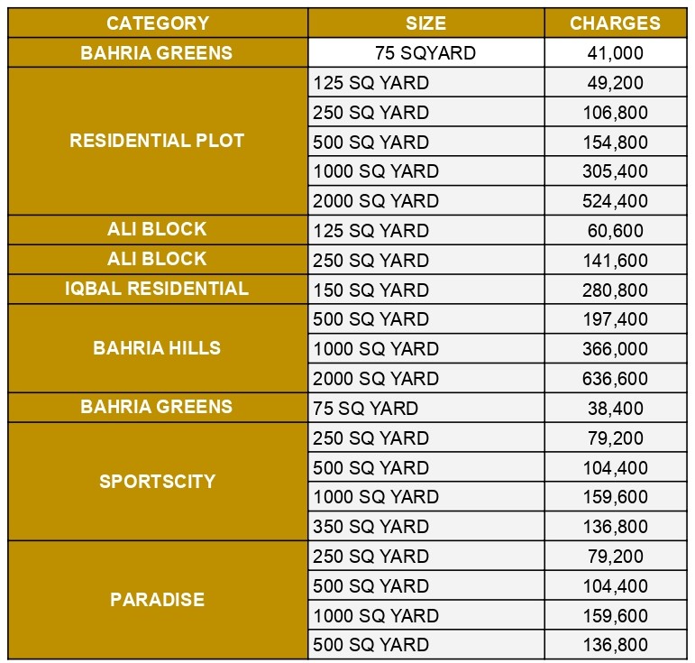 Bahria town Karachi 2026 Transfer Fees